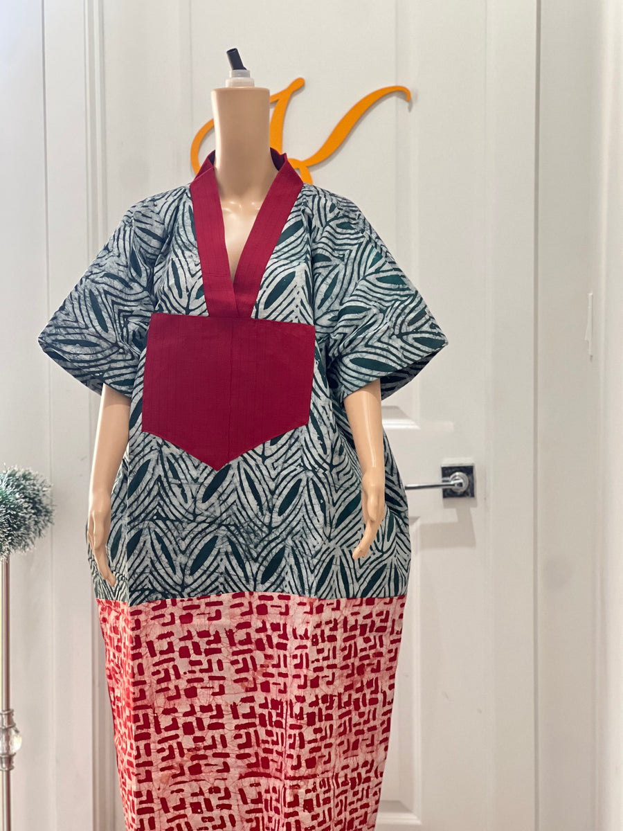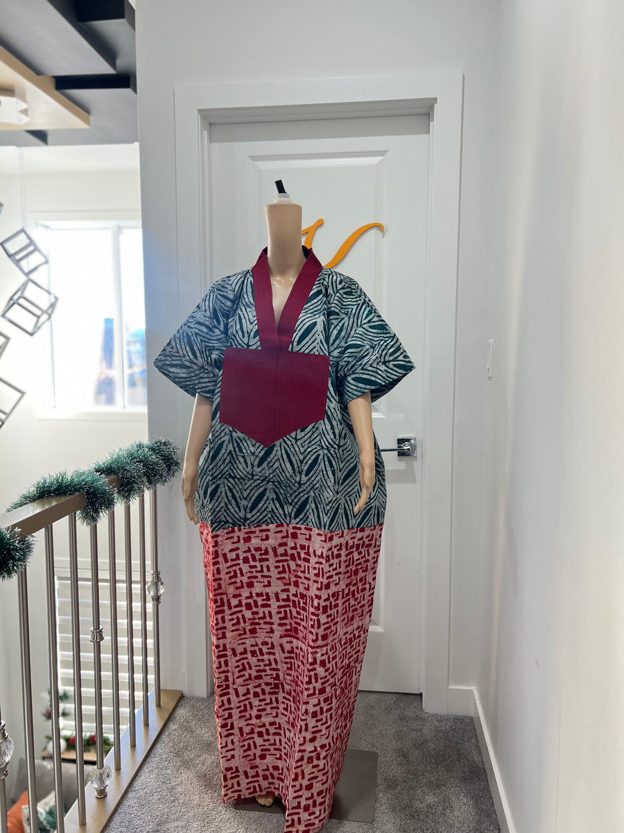 Adire maxi boubou gown